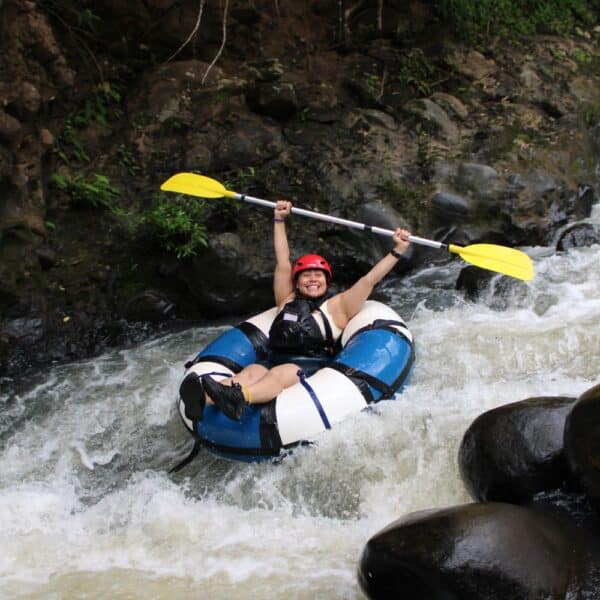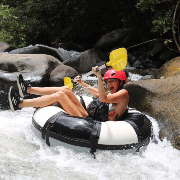 Join us for an exciting river tubing adventure on a narrow, fast-moving river with 4km (2.5 miles) of Class I, II and III rapids! Feel the rush as you bounce and splash through twists and turns with our specially-designed individual rafts that include handles and protective bottoms. With our expert guides, you can rest assured that safety and enjoyment are guaranteed throughout the entire experience and this will be the highlight of your trip in Costa Rica.